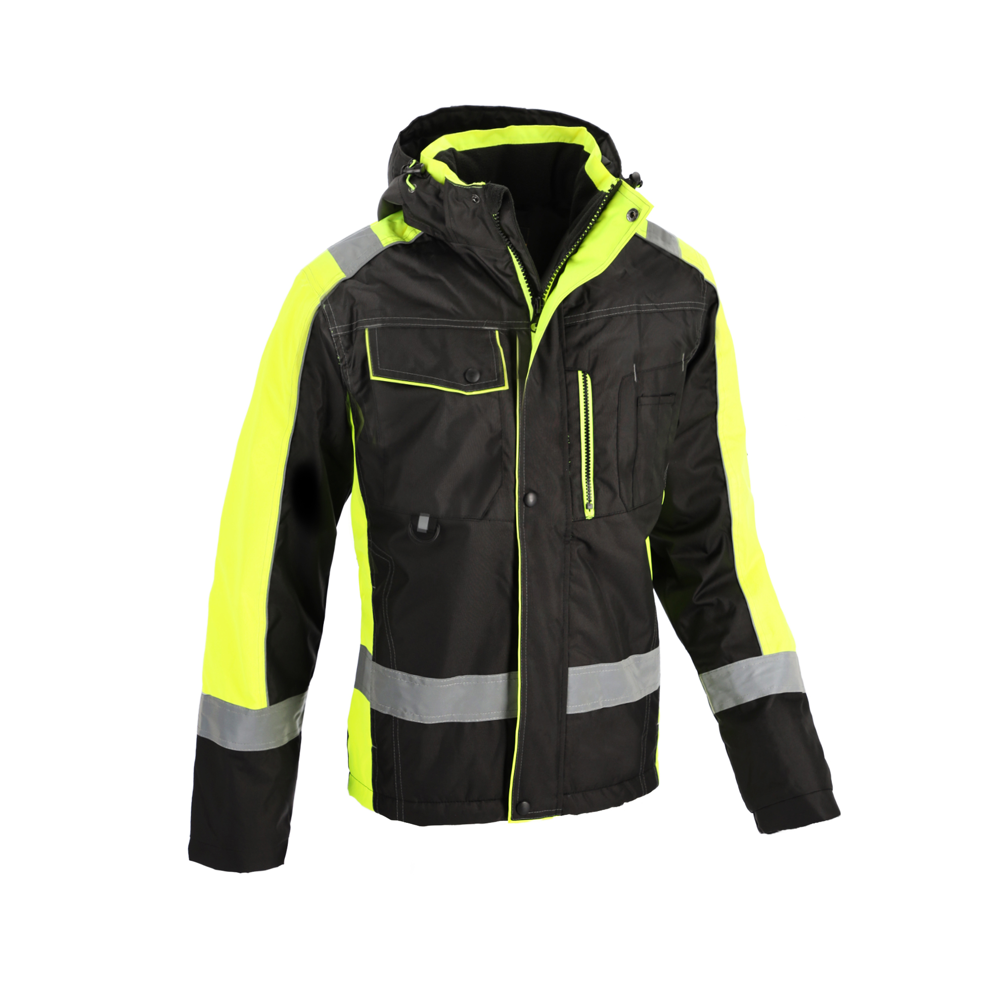 Kurtka ocieplana ALPHA wykonana z wodoodpornego materiału OXFORD (100% poliester impregnowany wewnętrznie PU). Zasuwana na zamek błyskawiczny osłonięty listwą na napy. Wiele funkcjonalnych kieszeni w tym kieszenie zewnętrzne: na klatce piersiowej zapinane na zamek oraz na napy, kieszonki na przybory, dwie dolne kieszenie wsuwane zapinane na zamek oraz kieszenie wewnętrzne: kieszeń siatkowa na akcesoria zimowe, kieszeń na smartfon zapinana na rzep oraz kieszeń piersiowa wewnętrzna na zamek. Odpinany ocieplany kaptur ze ściągającymi gumkami i stoperami dla pełnej regulacji i najlepszego dopasowania. Wysoki kołnierz chroniący przed wiatrem z wewnętrznym miękkim polarowym obszyciem. Mankiety zakończone miękkim wewnętrznym ściągaczem. Pikowana poliestrowa podszewka. Nieprzemakalne szwy uszczelnione taśmą. Rozmiary: S-XXXL. Kolory: Czarna/Żółta. (UE) 2016/425 Kategoria I – tylko do minimalnych zagrożeń.