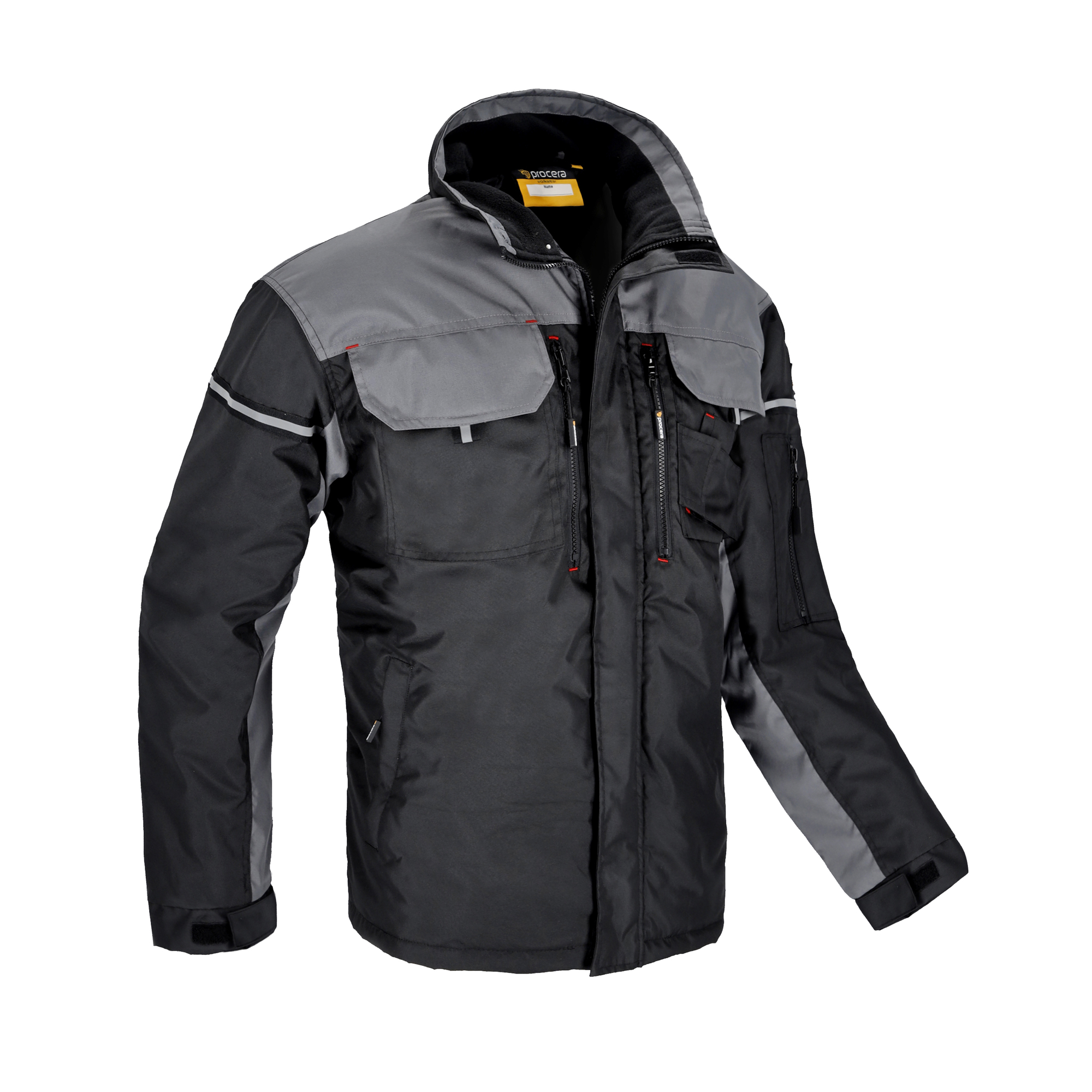 Kurtka ocieplana z poliestrową podszewką oraz warstwą zewnętrzną wykonaną w 100% z impregnowanego poliestru. Zasuwana na zamek błyskawiczny osłonięty listwą na rzepy. Posiada pięć kieszeni na klatce piersiowej – w tym dwie osłonięte klapami na rzep, dwie zasuwane na zamek błyskawiczny oraz kieszeń na akcesoria, dwie kieszenie dolne zapinane na suwak, a także kieszeń od strony wewnętrznej oraz wygodną kieszeń na rękawie zapinaną na suwak. Rękawy z regulacją na rzep. Stójka kołnierza wypodszewkowana polarem dla większego komfortu. Kolor: czarny/szary. Rozmiary: S- XXXL.