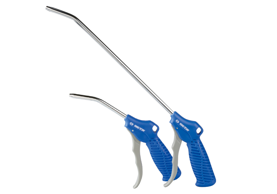 Pistolet do przedmuchiwania sprężonym powietrzem. Doskonale sprawdzi się przy usuwaniu zanieczyszczeń z maszyn, urządzeń i silników. Specyfikacja:• długość dyszy: 250 mm • standardowe przyłącze 1/4”• precyzyjna regulacja strumienia powietrza• ciśnienie [bar]: 6,2• materiał: dysza ze stali, uchwyt z nylonu
