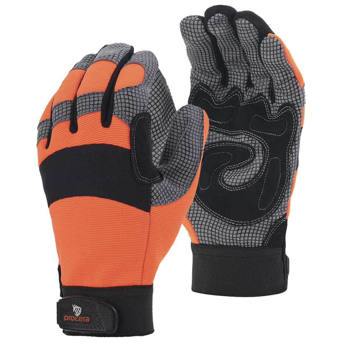 Rękawice robocze wykonane w części wierzchniej z elastycznego spandexu, a w części chwytnej ze skóry syntetycznej z silikonowym nadrukiem i wzmocnieniami. W wewnętrznej części chwytnej dodatkowe wstawki z miękkiego materiału EVA tłumiące drgania i wibracje, zwiększające komfort użytkowania i poczucie miękkiego chwytu. Warstwa neoprenowa na wysokości kostek dla dodatkowej ochrony. Dodatkowe wzmocnienie w miejscu najbardziej narażonym na przecięcia i przetarcia pomiędzy kciukiem a palcem wskazującym. Dodatkowa perforacja zapewniająca lepszą wentylację i oddychalność dłoni. Zapinane na rzep. Każda para posiada osobną zawieszkę ekspozycyjną. Kategoria I.