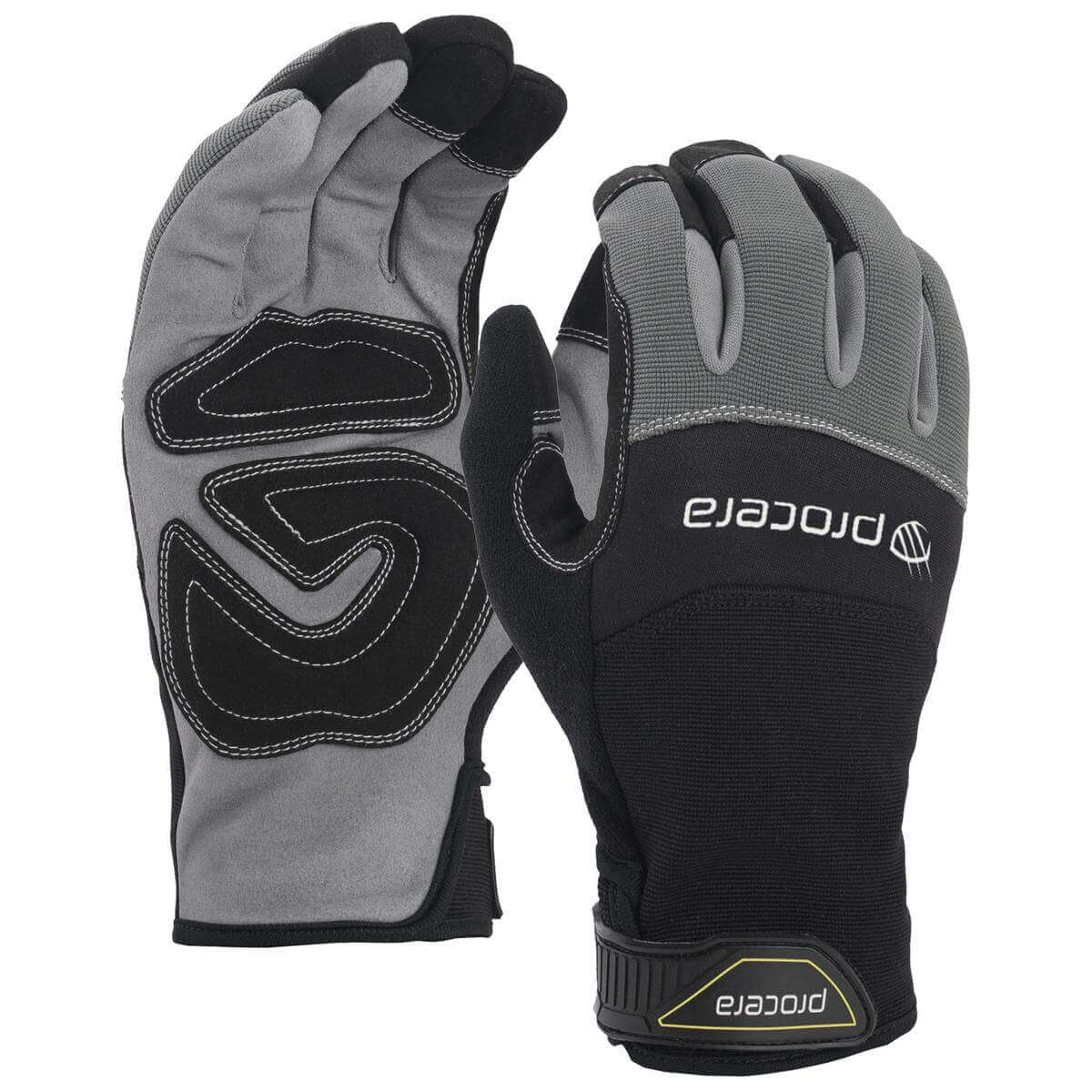 Rękawice robocze wykonane w części wierzchniej z elastycznego spandexu, a w części chwytnej ze skóry syntetycznej ze wzmocnieniami. W wewnętrznej części chwytnej dodatkowe wstawki z miękkiego materiału EVA tłumiące drgania i wibracje, zwiększające komfort użytkowania i poczucie miękkiego chwytu. Dodatkowe wzmocnienia na końcu kciuka, palcu wskazującym i środkowym oraz dodatkowe wzmocnienie w miejscu najbardziej narażonym na przecięcia i przetarcia pomiędzy kciukiem a palcem wskazującym. Na wysokości kostek elastyczne wzmocnienie neoprenowe dla dodatkowej ochrony. Zapinane na rzep. Wstawka antypotna na grzbiecie kciuka. Każda para posiada osobną zawieszkę ekspozycyjną. Kategoria I.