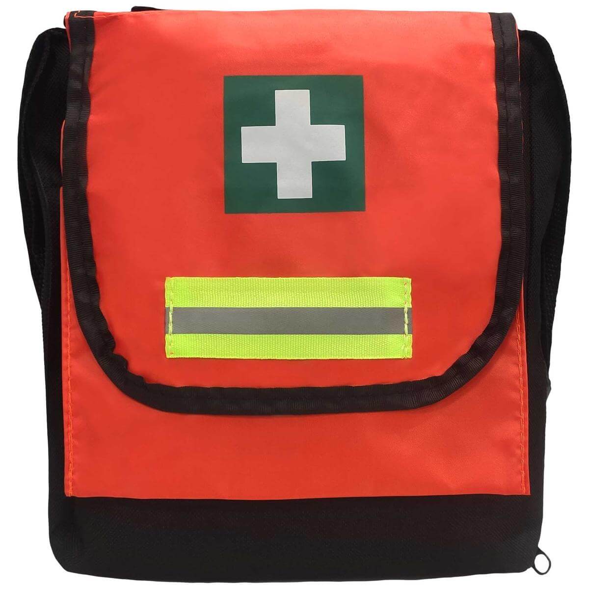 Zestaw przenośny pierwszej pomocy, plecak wykonany z tkaniny wodoodpornej z elementami odblaskowymi, zapinany na zamek błyskawiczny. Posiada szelki do noszenia. Wyposażenie – DIN 13164 + aparat do sztucznego oddychania, wyposażenie zgodne z normami UE. Wymiary: 240 mm x 190 mm x 80 mm